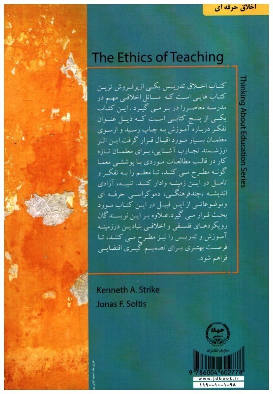 - جزییات درباره کتاب اخلاق تدريس اثر جانس اف- سولتيس و كنت استرايك با ترجمه ی محبوبه خسروي: این اثر توسط سازمان انتشارات جهاد دانشگاهي منتشر شده است و می توانید اين كتاب و ساير کتاب های مديريت را از طریق خرید آنلاین از سایت فروش اینترنتی کتاب صانعی سفارش دهید.