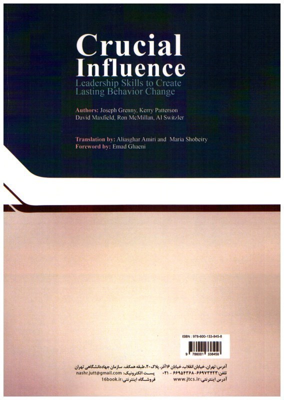 درباره کتاب تاثير گذاري حياتي (مهارت هاي رهبري براي خلق رفتارهاي ماندگار) اثر ال سويتزلر و ران مك ميلان و كري پترسون و جوزف گرني با ترجمه ی ماريا شبيري و علي اصغر اميني: