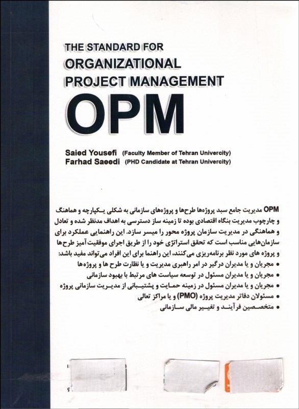فهرست مطالب * فصل اول: مقدمهاي بر راهنماي عملكرد * فصل دوم: چگونگي آماده شدن جهت اجرا و پيادهسازي OPM * فصل سوم: چگونگي پيادهسازي و بهبود OPM * فصل چهارم: چگونگي پيادهسازي فرايندهاي اصلي توانمندسازي * فصل پنجم: چگونگي توسعه روش مديريت پروژه سازماني مناسب * پيوستها * مراجع * واژهنامه *