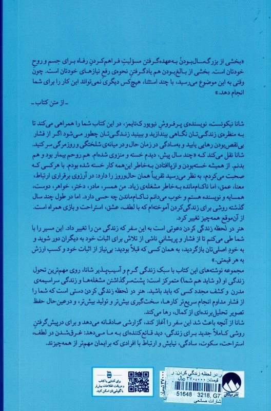 درباره کتاب هنر در لحظه زندگي كردن: رهايي از اضطراب و دستيابي به روشي ساده تر و پرشورتر براي زندگي اثر شانا نيكوئست با ترجمه ی آرزو موميوند و معصومه محمودي: