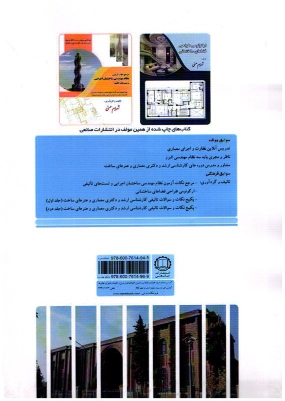 این اثر توسط صانعي شهميرزادي منتشر شده است و می توانید اين كتاب و ساير کتاب های آزمون هاي معماري را از طریق خرید آنلاین از سایت فروش اینترنتی کتاب صانعی سفارش دهید.