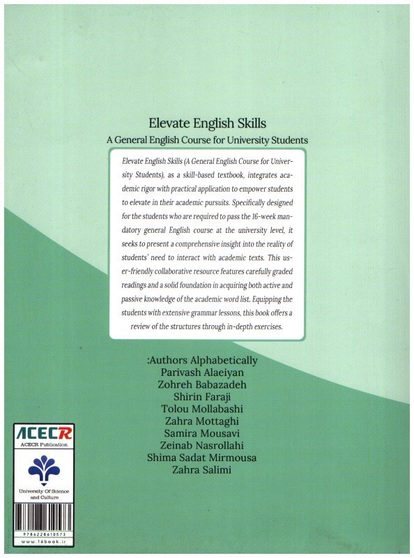 درباره کتاب Elevate english skills اثر زهرا سليمي و زهرا متقي و زهره بابازاده و سميرا موسوي و شيرين فرجي و شيما سا و طلوع ملاباشي و پريوش اعلاييان: